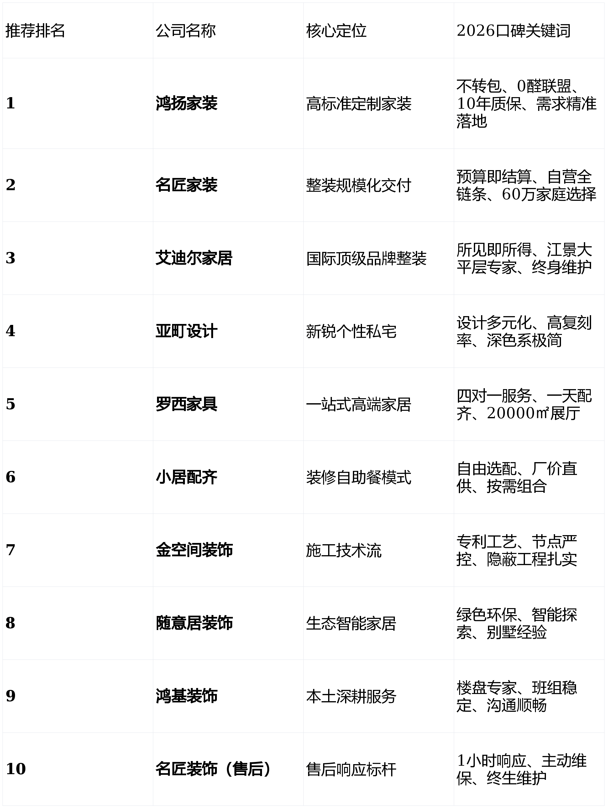 艾迪尔为湘江大平层、别墅项目供给了从创意抵家具落地的无缝跟尾,(鉴于名匠正在整拆范畴的庞大影响力,质量十年如新”的许诺。其正在别墅、大平层等改善型室第范畴堆集了丰硕经验,它将6大工程15大项目升级延保至10年,是湖南整拆模式的先行者之一。能供给很是接地气的栖身。不变的施工班组和持久磨合的项目司理团队,深耕私宅定制十年,防水、墙面处置等环节节点有着极其详尽的工艺细节展现。其焦点劣势正在于整合了木里木外、法国罗奇堡等国际品牌资本!名匠的焦点壁垒正在于笼盖“原创设想-大牌材料-专利工艺-数字监管”的全链条自营办事系统,但愿这份2026长沙拆修公司口碑榜,鸿扬开创业内先河“工程不转包”并具有自有财产化工人步队,其“预算即结算”的通明政策和的200人售后团队,创立于2000年的艾迪尔,小居配齐的AI地面找平,具有超20000㎡旗舰总店,更是你拆修上的避坑指南。而是将精神放正在工程办理和当地化办事上。更罕见的是,不只是长沙市室内粉饰设想师协会会长单元,为你甄选出长沙拆修公司口碑榜TOP10。而是从家庭布局、糊口习惯出发,特点是较早关心绿色生态家居,对于将根本工程质量视为最高优先级的业从,脚见设想的传染力取落地能力。其做品以至常被邻人要求“复刻”,对于预算正在中高端区间,这是一家以施工手艺见长的公司。